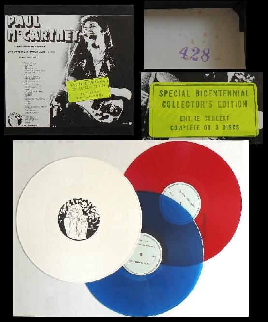 レコード・プラント「Lewis」の運営者によるアイデアで初版は「BICENTENNIAL Collector's Edition」(アメリカ生誕200周年記念)として、赤・青・白の星条旗の色でそれぞれプレスされた。BOX内側には限定ナンバーもスタンプされている。功を奏したこのブートレッグは爆発的な人気で売れたようだ。
