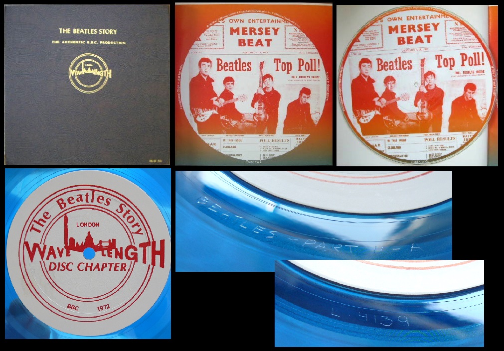 ←写真 「The Beatles Story」(1980年、未リスト)150セット限定、13枚組のピクチャー・ディスク。その他ブルー・カラーでもプレスされた。マトリックスにはL-ナンバーが付いており、「Greg Lee Processing」でプレスされたことを物語る。このセットは「Ticket To Ryde LTD.」を通し販売された。