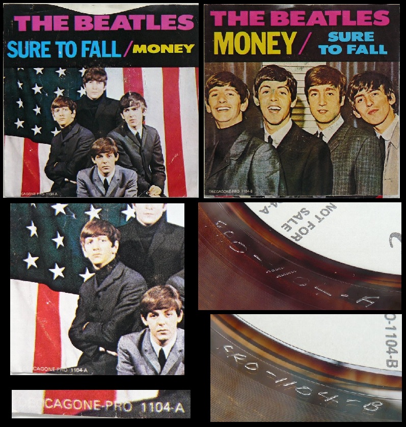 なお、「SURE TO FALL / MONEY」(PRO-1104)のオリジナル盤はType CとType Dのもののみで、他にオリジナル仕様は確認されていない。PRO-1100から1103までのタイトルにあったような新しいスタンパーを使用したプレスも確認されていない。