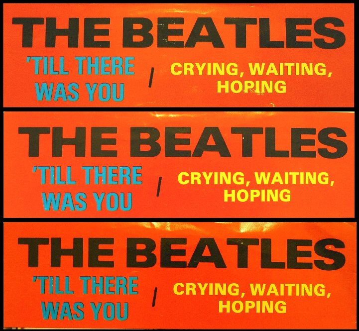 ピクチャー・スリーブのデザインはオリジナルとは異なり、上部がグリーンとなっており、その上に「CRYING, WAITING, HOPING」の文字がイエロー、「'TILL THERE WAS YOU」の文字がレッドで印刷されている。 ディスク・レーベルはダーク・グリーン地にシルバーで印刷されている。
